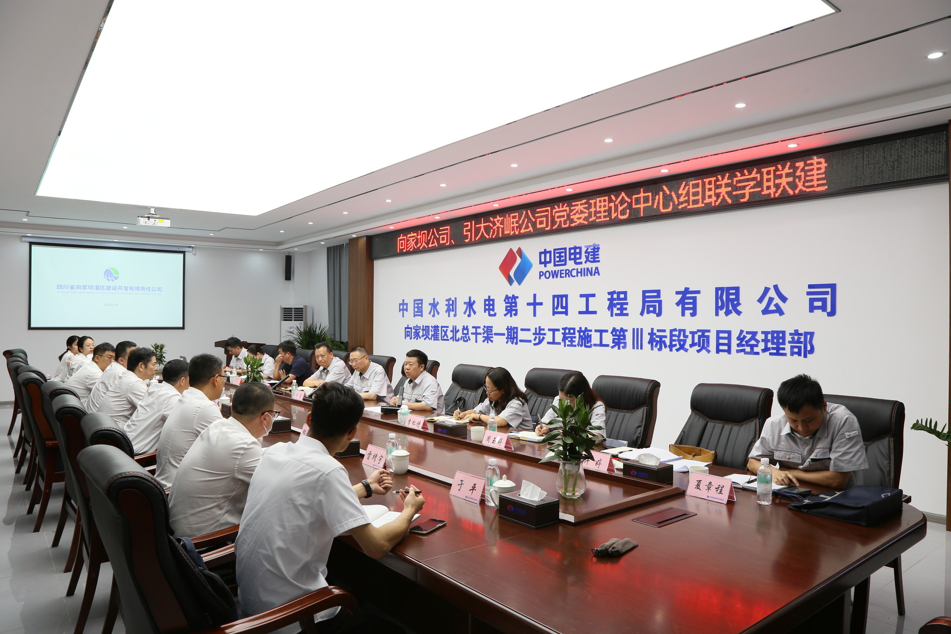為深入貫徹落實習近平總書記關于黨紀學習教育的重要講話和重要指示精神,認真學習《中國共產黨紀律處分條例》,5月23日,向家壩公司與引大濟岷公司黨委以“聯學聯建創新學習形式 以高質量理論學習助力四川骨干水網建設”為主題開展黨委理論中心組聯學聯建活動。圍繞主題共同學習、橫向聯動,堅持思想引領、以學促干,將理論學習成效賦能施工一線,共同助力四川骨干水網建設大發展。